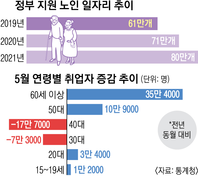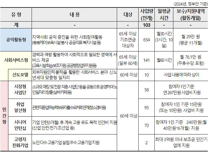 ▶ 노인 일자리 수 : (2023년) 88.3만 명 → (2024년) 103만 명