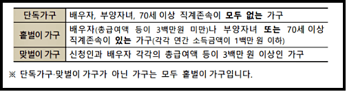 ■ 신청대상 가구유형(2022년 12월 31일, 가구원 구성, 소득 유무 등에 따라 분류)