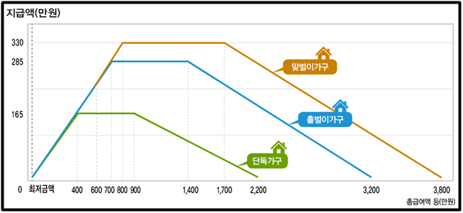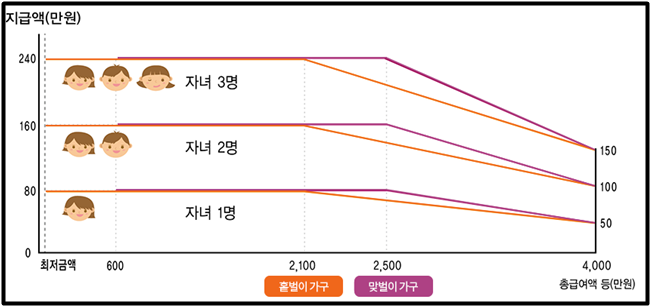2) 18세 미만 부양 자녀가 있는 경우, 1인당 최대 80만 원(최소 50만 원)을 지급하는 제도