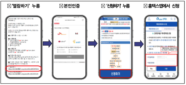 ① 카카오톡. 문자메시지에 첨부된 안내문을 열람하여 '신청하기' 버튼 누름
