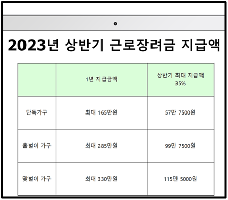 9월 1일부터 15일까지 2023년 귀속 상반기분 근로소득에 대한 근로장려금을 신청받는다고 합니다. 대상은 2023년도 상반기에 다른 소득 외에 근로소득만 발생한 146만 명이 신청 대상입니다.