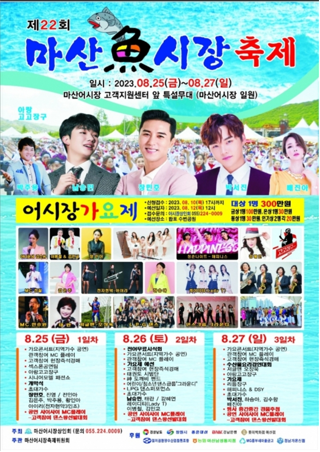 - 축제는 마산어시장을 대표하는 축제로 다양하고 풍성한 행사가 열리며, 인기 트로트가수와 문화예술단 등 출연