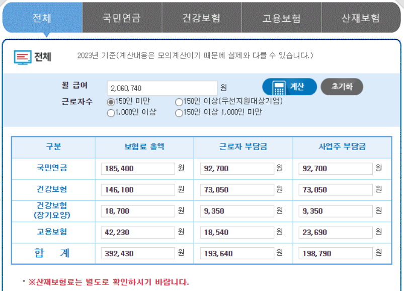2) 근로자 입장 : 건강보험료의 부가보험료인 요양보험료를 포함하여 건강보험료, 고용보험료, 국민연금 보험료라는 4가지 보험료를 월급에서 공제