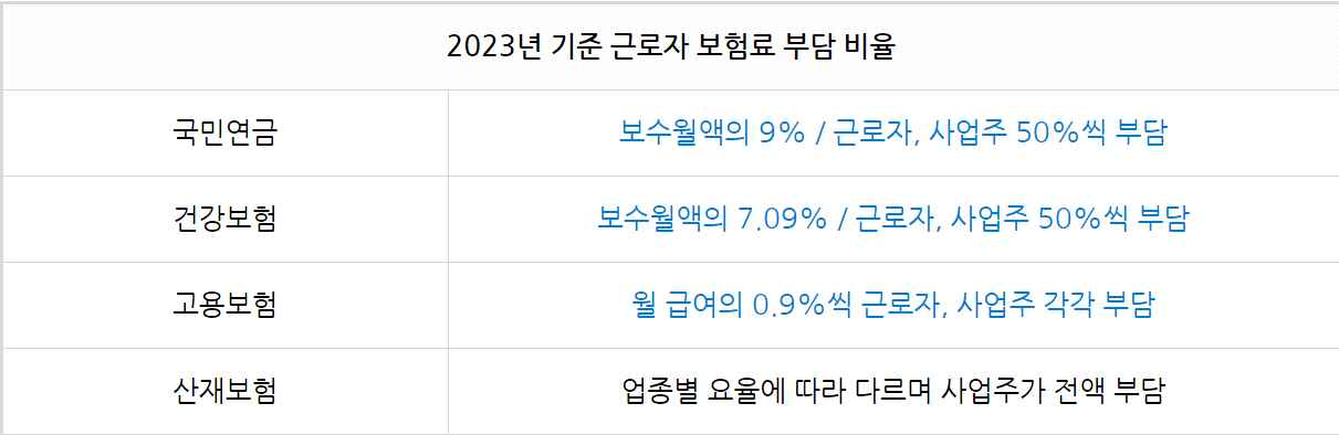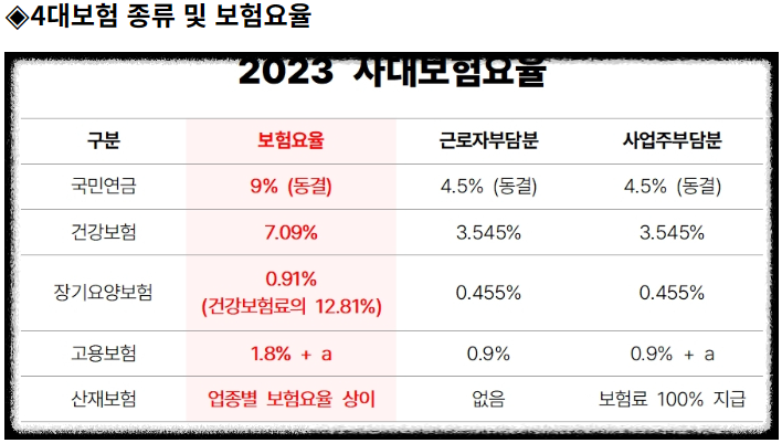 3) 2022년 7월부로 고용보험료(실업급여 보험료)가 기존 1.6%(노사 합산분)에서 현행 1.8%로 인상된 바 있음(따라서, 당분간 고용보험료의 인상 여력은 없음)