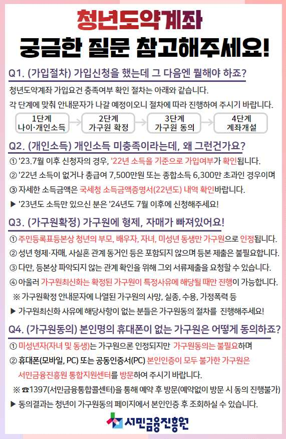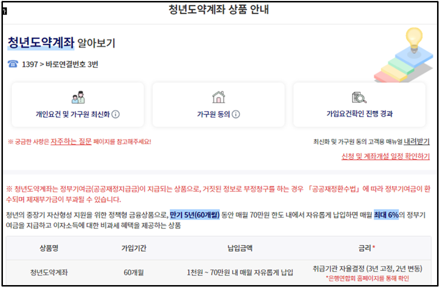▷ 신청 방법 : 청년도약계좌 취급 은행 앱을 통해 비대면 신청 및 가입
