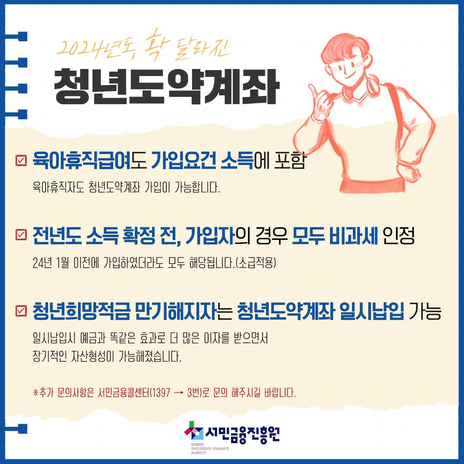 * 청년희망적금 만기가 도래하면 청년도약계좌로 일시 납입이 가능해지고, 육아휴직 급여도 청년도약계좌 소득 요건으로 인정