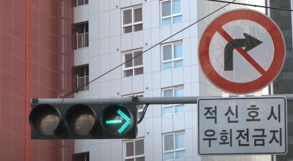 그래서 새로운 우회전 신호등이 또 추가되었습니다. 기존에 있던 세로형 우회전 신호등에서 가로형으로 바뀌었고, 전방 신호등 아래 또는 그 옆에 우회전 신호등이라는 표지판과 함께 설치되고 있습니다. 따라서 우회전할 때 신호등이 적색이면 무조건 정지해야 하고, 우회전 신호가 들어올 때만 우회전을 할 수 있습니다.