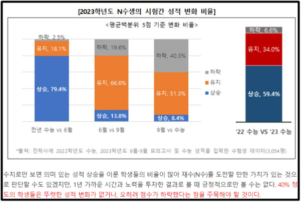 - 2023년도 수능 N수생 유입에 대한 예상치도 2022년도와 거의 유사할 것으로 전망